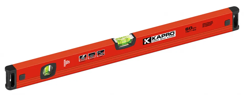 Основная функция уровня — измерение неровностей с максимальной точностью. Уникальное преимущество модели КАПРО заключается в использовании двух колб, которые обеспечивают более точное и удобное считывание показаний, что значительно повышает качество работы.