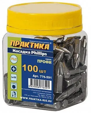 Бита PH2 25мм ПРАКТИКА, 1шт. Для саморезов Phillips. Стандартная длина.