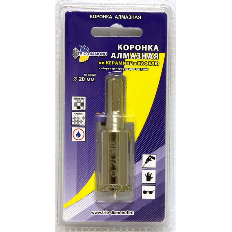 Коронка алмазн. керамика, кафель 20мм с центрир. сверлом TRIO DIAMOND