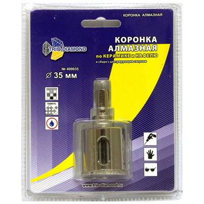 Коронка алмазн. керамика, кафель 35мм с центрир. сверлом TRIO DIAMOND