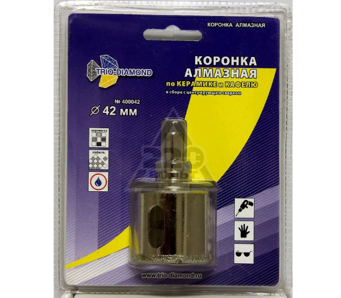 Ищете надежное решение для сверления кафеля, керамики и стекла? Представляем коронку алмазную TRIO DIAMOND с центрирующим сверлом диаметром 42 мм — идеальный выбор для профессионалов и домашних мастеров, обеспечивающий безударное сверление и долговечность инструмента.