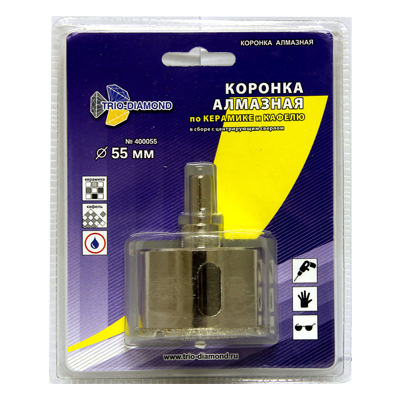 Коронка алмазн. керамика, кафель 55мм с центрир. сверлом TRIO DIAMOND