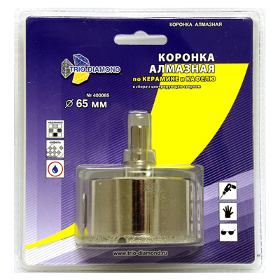 Коронка алмазн. керамика, кафель 65мм с центрир. сверлом TRIO DIAMOND