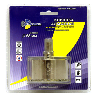 Ищете надежное решение для сверления кафеля, керамики и стекла? Представляем коронку алмазную TRIO DIAMOND с диаметром 68 мм и центрирующим сверлом, которая гарантирует аккуратные и ровные отверстия без сколов и трещин.