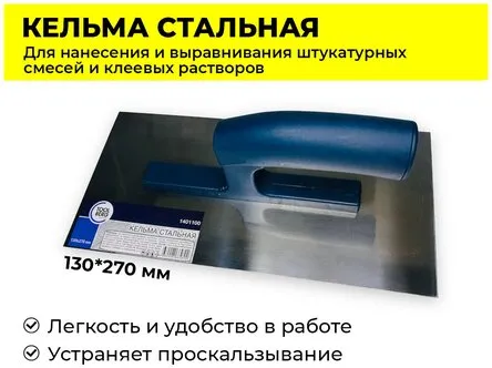 Особенность товара — прочное лезвие из нержавеющей стали размером 130х270 мм, которое идеально подходит для различных отделочных задач.