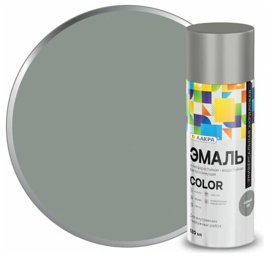 Эмаль аэрозольная Светло-серый 520мл ЛАКРА акриловая универс.RAL 7004