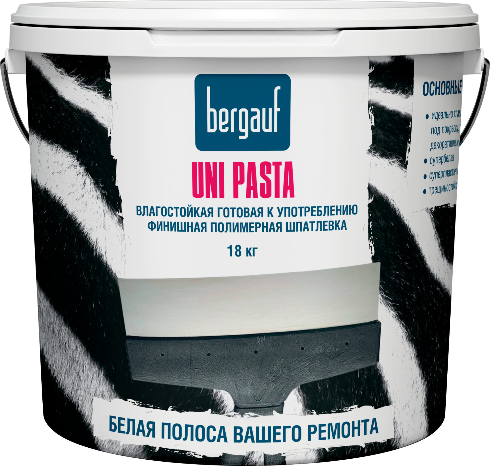 Купите влагостойкую шпатлевку Бергауф Uni Pasta 18кг — готовую к использованию, с супербелым цветом и быстрым высыханием! Идеальна для влажных помещений, швов ГКЛ и выравнивания. Быстрая доставка по Красноярску и России. Отличное качество по выгодной цене!