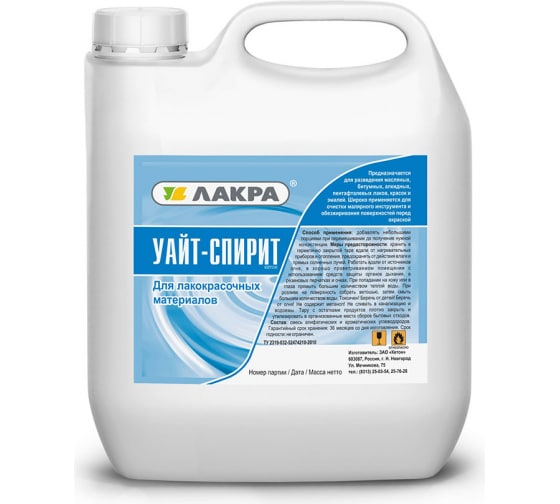 Уайт-спирит Лакра 5л — универсальный разбавитель и очиститель для идеальной подготовки и быстрого очищения кистей. Быстрое испарение, отсутствие следов, экологичность. Количество ограничено! Успейте купить с быстрой доставкой по Красноярску и России!