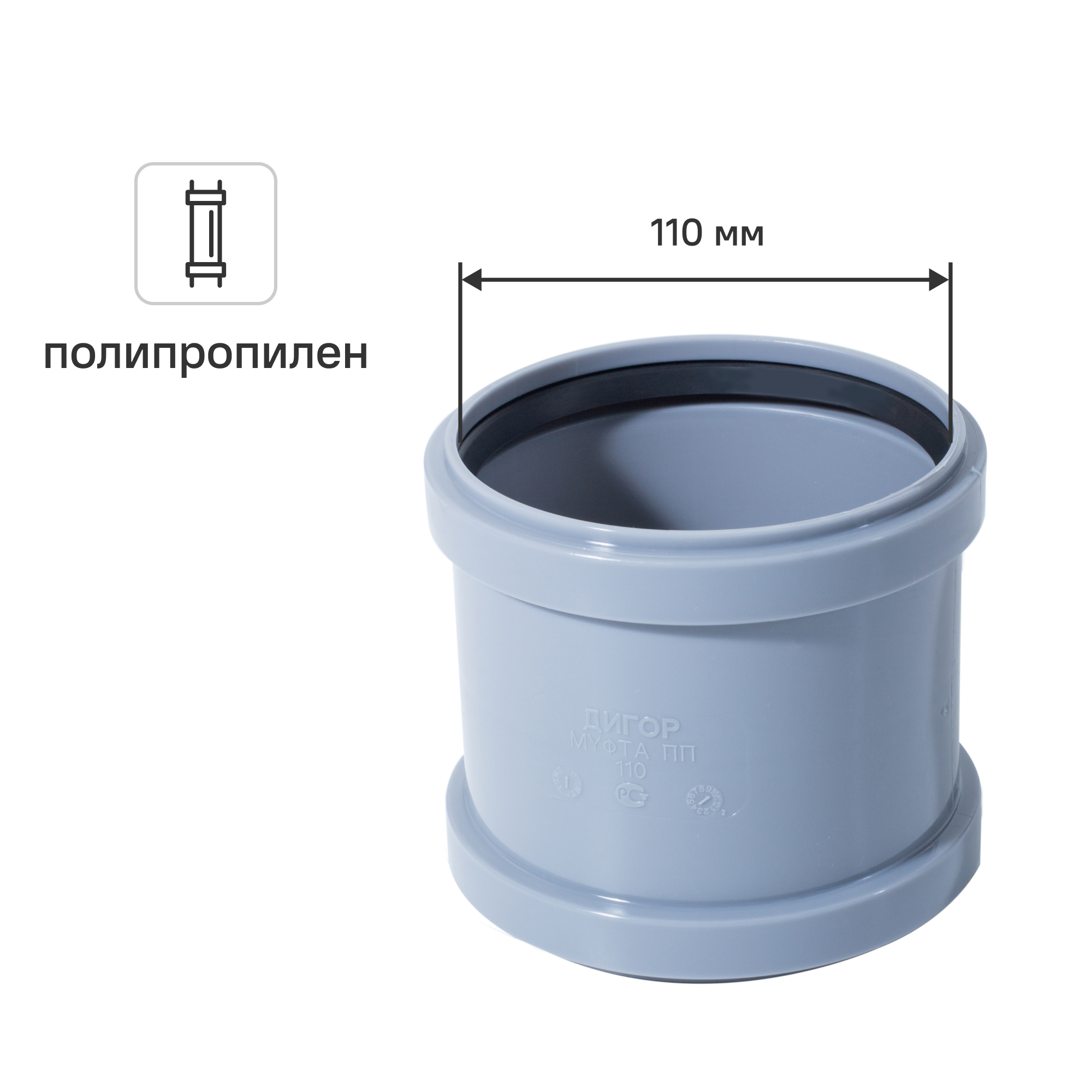 Муфта двухраструбная ПП 110 внутренняя канализация Дигор/60
