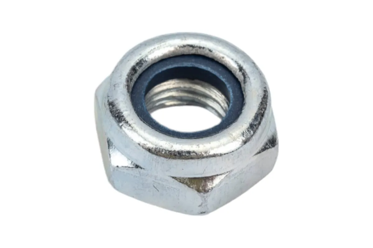 Особенность: Встроенное стопорное кольцо, которое эффективно предотвращает самоотвинчивание, выделяет эту гайку среди аналогов.
