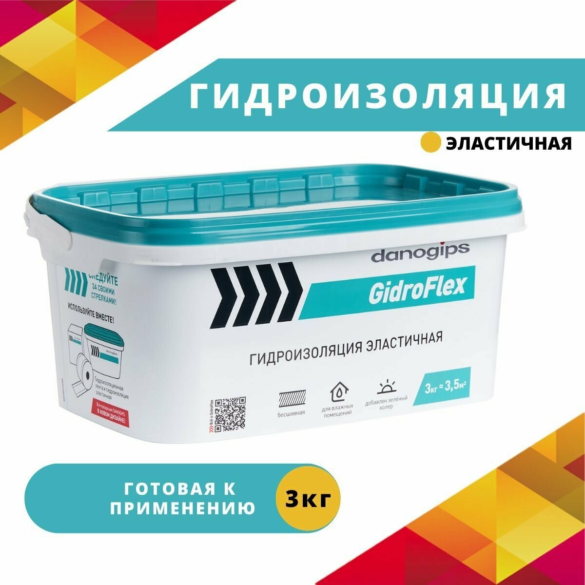Ищете надежную защиту от влаги? Гидроизоляция DANOGIPS GidroFlex эластичная, 3 кг — готовое к применению решение для стен и полов. Высокая водонепроницаемость, эластичность и простота нанесения. Идеально для влажных помещений. Быстрая доставка и гарантия качества от DANOGIPS!